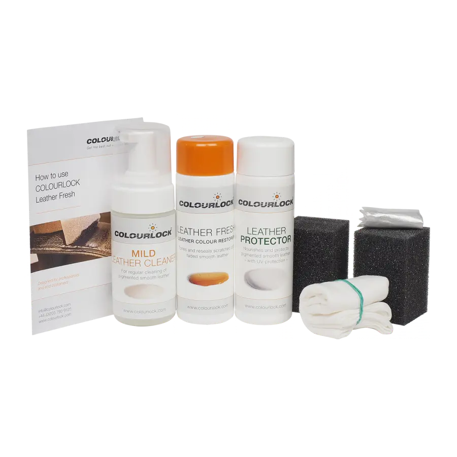 Colourlock Leder Fresh Set is een complete set om het interieur van uw wagen terug als nieuw te krijgen. Voer de naam van het leder in bij het doorvoeren van uw bestelling...